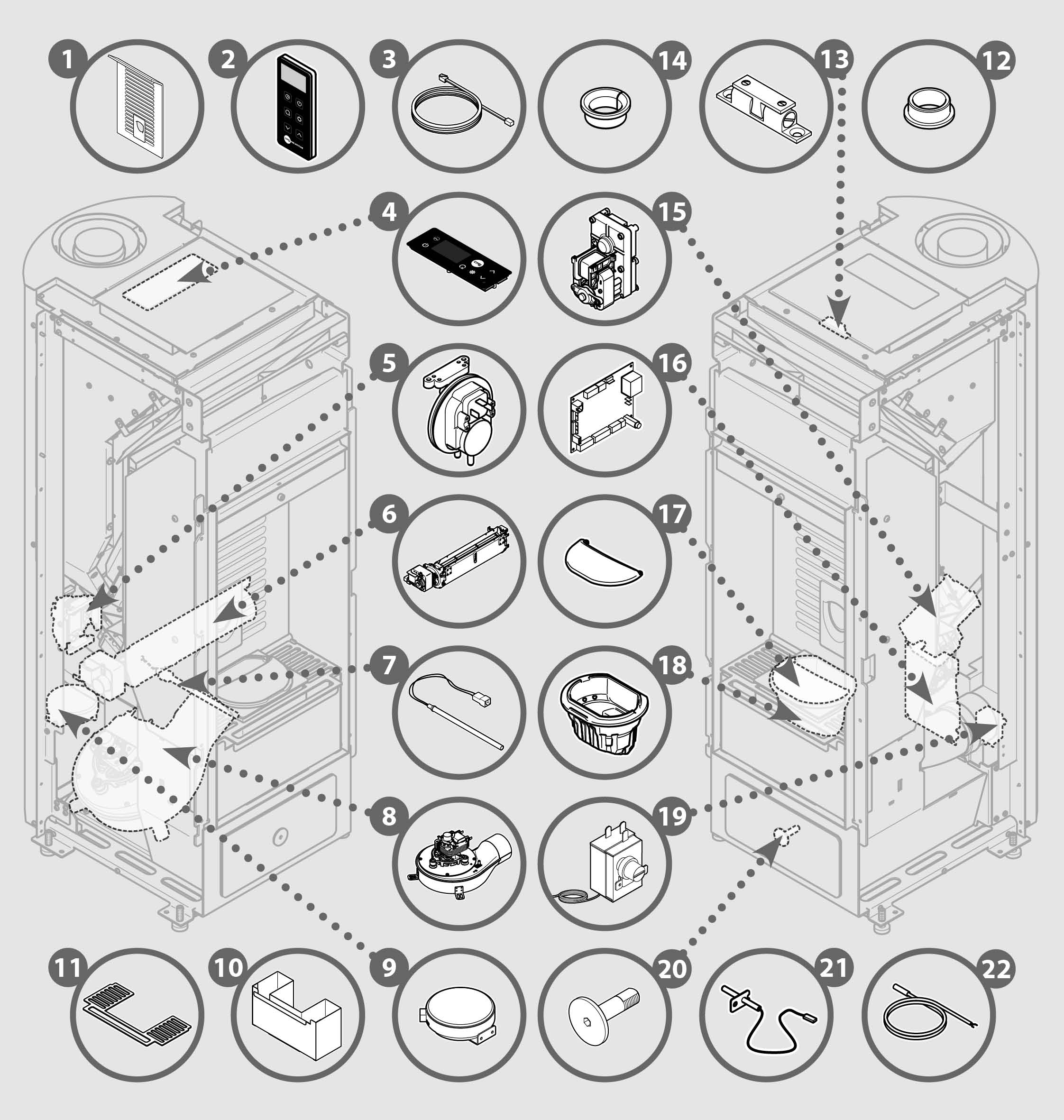 Retrouvez toutes les pièces pour les poêles à granulés CMG foyers BOREA en 6kW et 8kW.